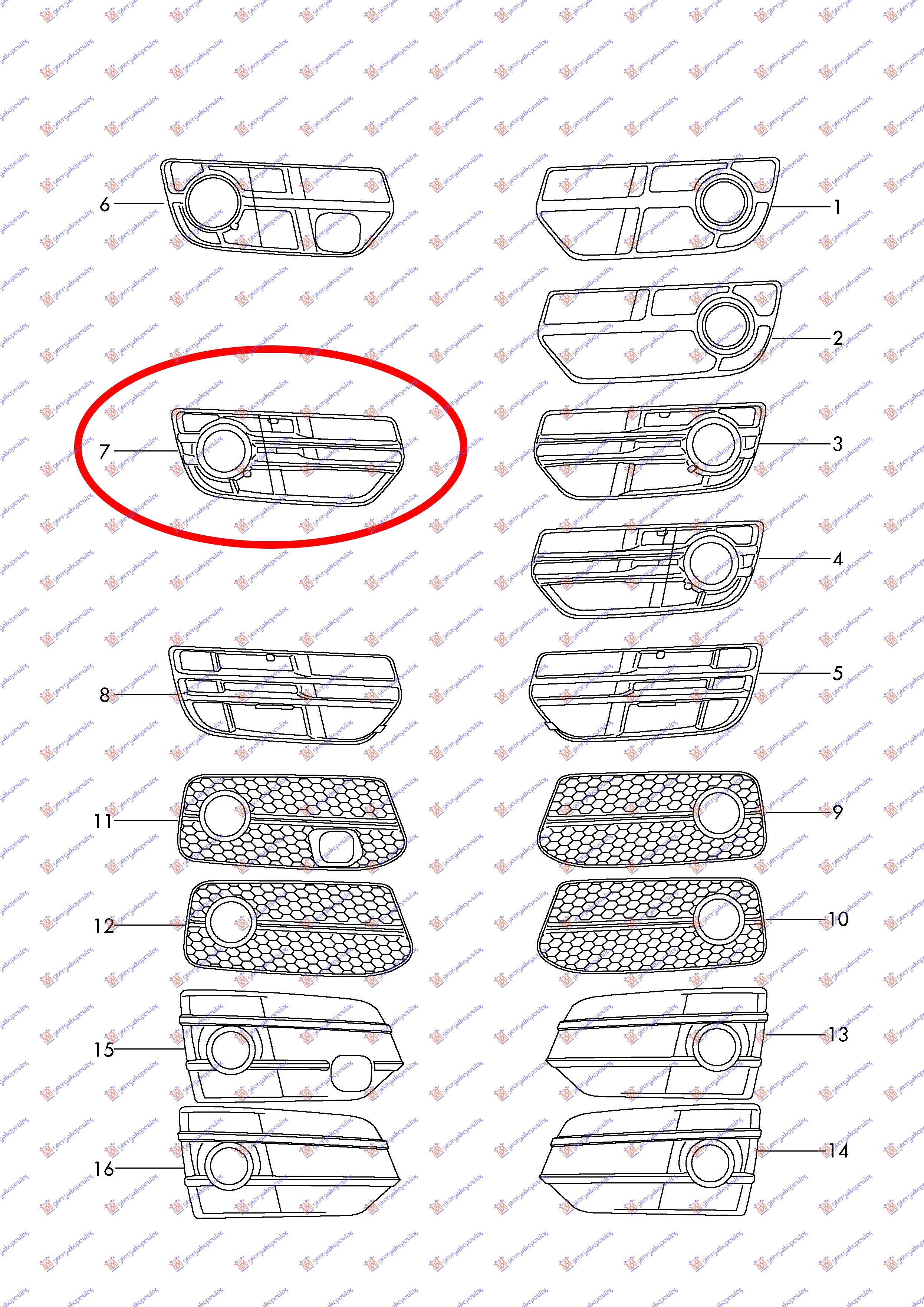 Grilë në parakolpin e përparmë (me hapje për drita të mjegullës) - OEM: 8R0807682A