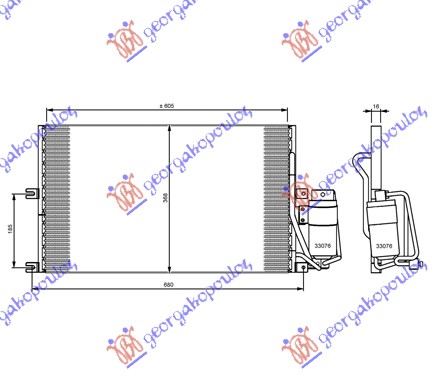 Radiator i kondicionerit (610x368x16) - OEM: 1850041