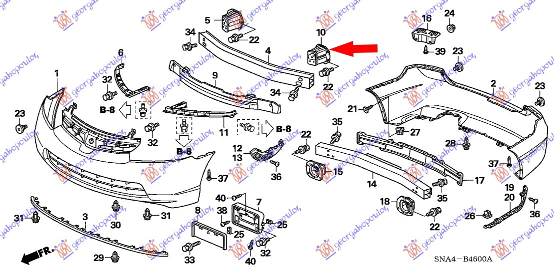 Shtërngues/mbajtës për parakolpin e përparmë - OEM: 71185-SNA-A00ZZ