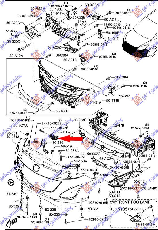 Shtërngues/mbajtës në parakolpin e përparmë i sipërm plastik - OEM: C513-50-0T1B