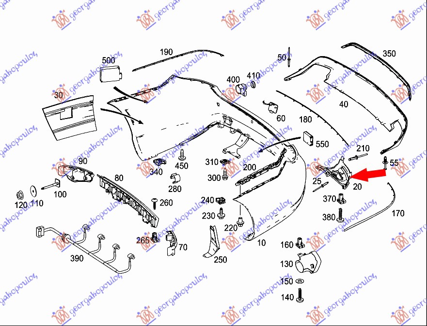 Shtërngues/mbajtës në parakolpin e pasëm plastik (AMG line) - OEM: 2078851765
