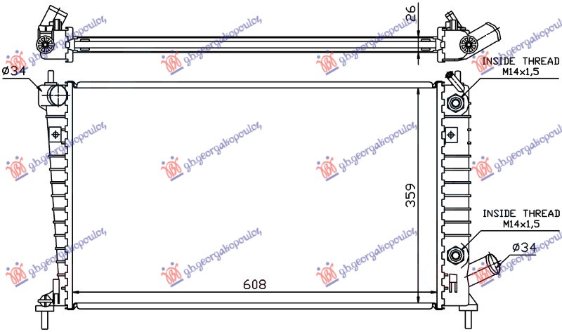 Radiator për motor 2.0-2.3 benzinë (marsh automatik) (608x359) - OEM: 32019620